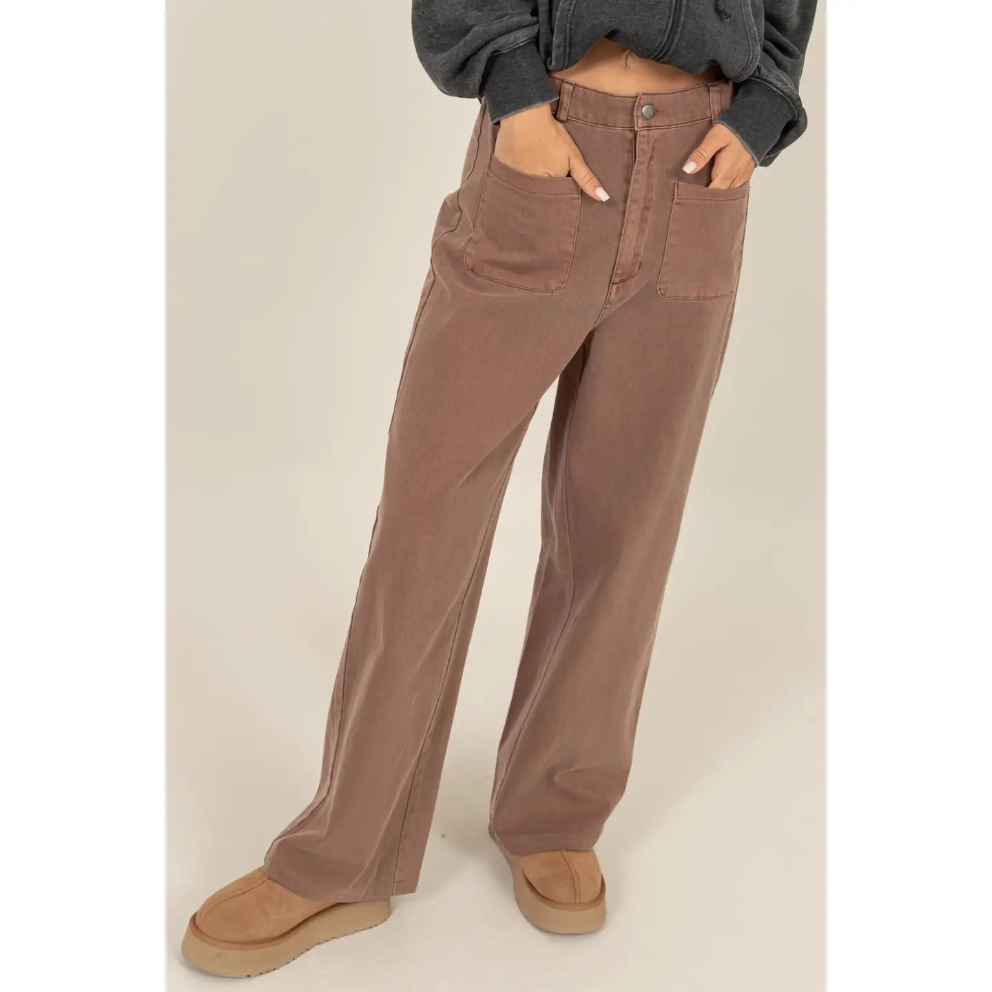 These Have A Wide-Cut Design That's Composed Of Cotton Twill, Featuring A High Waist With Top Button Closure, Belt Loops And An Elasticated Back For A Comfortable Fit. Front Patch Pockets Finish The Look.