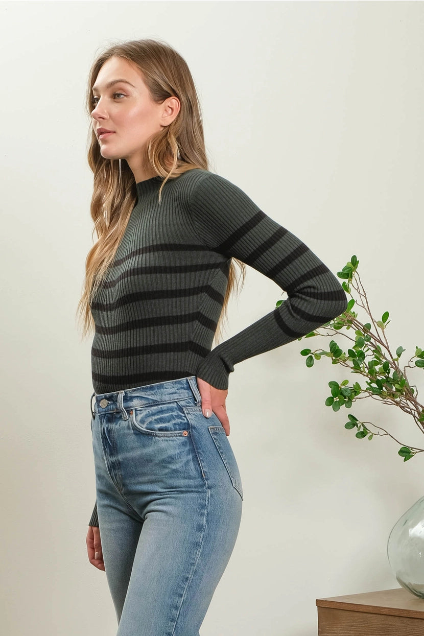 MAY-BELLE STRIPED MOCK NECK KNIT SWEATER